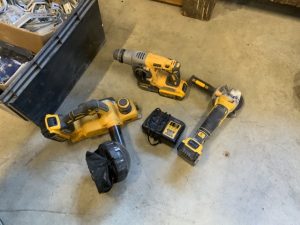 Scies pendulaires, circulaires et sauteuses, perforateurs, ponceuses, cloueurs, rabots, compresseur, rainureuses, lasers, caisses à outils, carrelettes, visseuses…