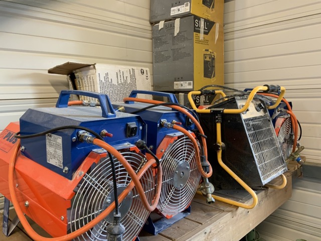 Chauffages de chantier électrique et gaz, disqueuses, coupes carreaux, chalumeaux, pistolet AIRLESS, tourets, palan à chaines ALTO, malaxeurs, tronçonneuse JEPSON, nettoyeur KARCHER, bétonnière électrique 150 L, échelles aluminium, girafe FLEX, burineur, transpalette, groupe électrogène SDMO, stock de plomberie électricité quincaillerie placo, appareillages électriques, postes à souder ESAB, échafaudages, monte matériaux IMER, pulvérisateur thermique STIHL, racks de stockage, poste de soudure, décapeur thermique…