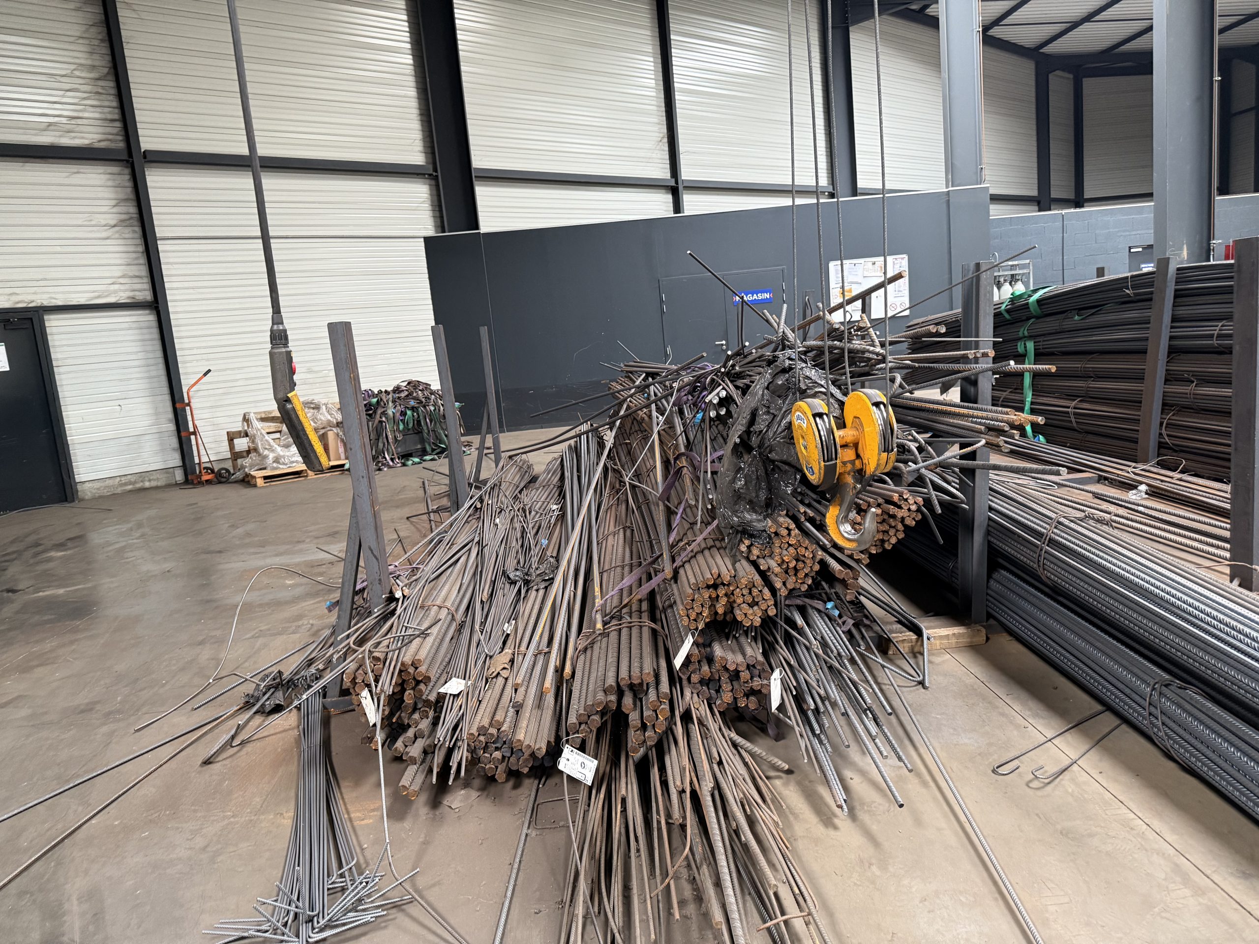 Chariots métalliques , cintreuse TECMOR an 2019, compresseur LAC AIR an 2024, Racks, Pont roulant ABUS 3.5 T an 2023 , nombreux postes à souder ESAB , KEMPI MIG, KEMPI MASTER, MIGATRONIC … an. 2019 et 2023 , tréteaux acier , stock important de ronds torsadés HLE , armatures acier Chariot élévateur TOYOTA GO an 2008 4175 h , transpalette , beau mobilier de bureau ordinateurs MACINTOSH , TERRA … imprimantes …